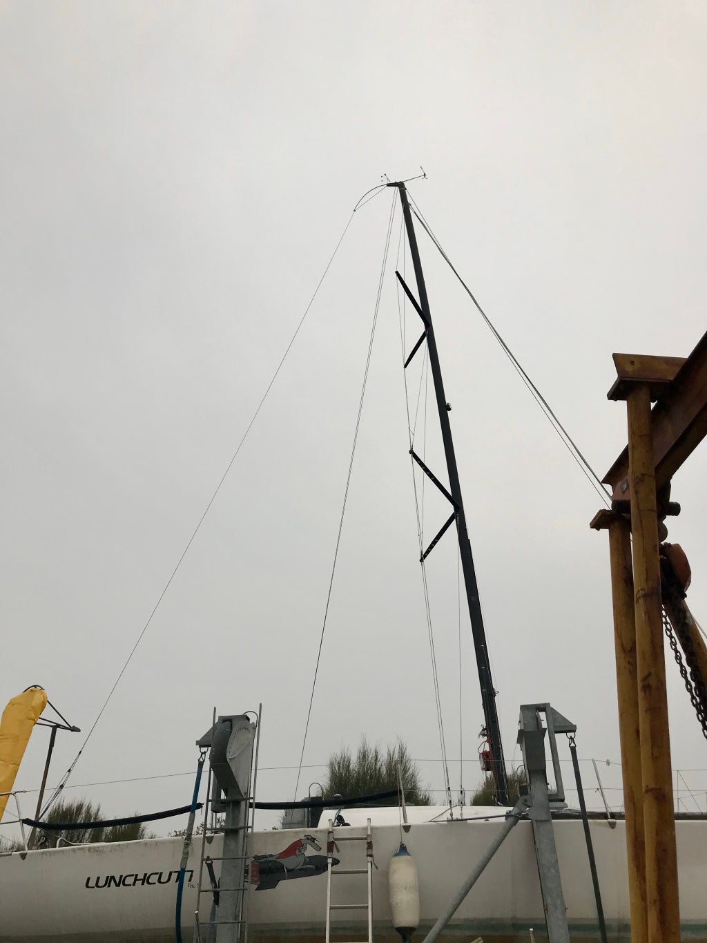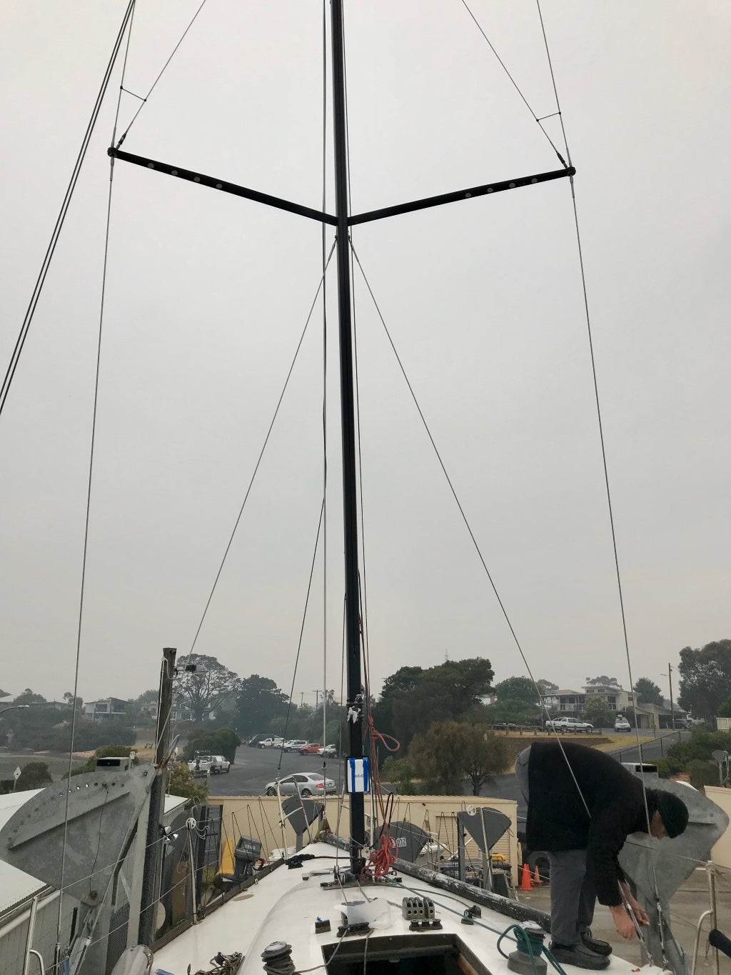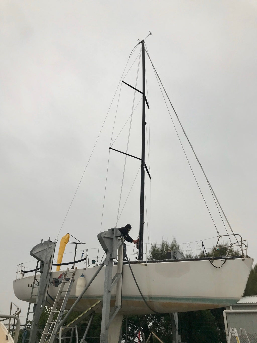 The carbon fibre rig was lovingly restored to its original glory, with some additional enhancements at the request of the client. The mast was shortened, to fit into the new environment - in particular the ability to clear San Remo Harbour Bridge - which resulted in a reduced height and a new modern square top main-sail to increase power and performance.
